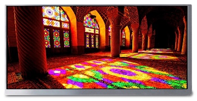 The new product not only has a distinctive module size of 271.8 mm width x 133.0 mm height (aspect ratio of 37:17) but also adopts a narrow frame design with the narrowest side length being 2.3 mm, enabling stylish application design in which, for example, multiple displays are aligned side by side.