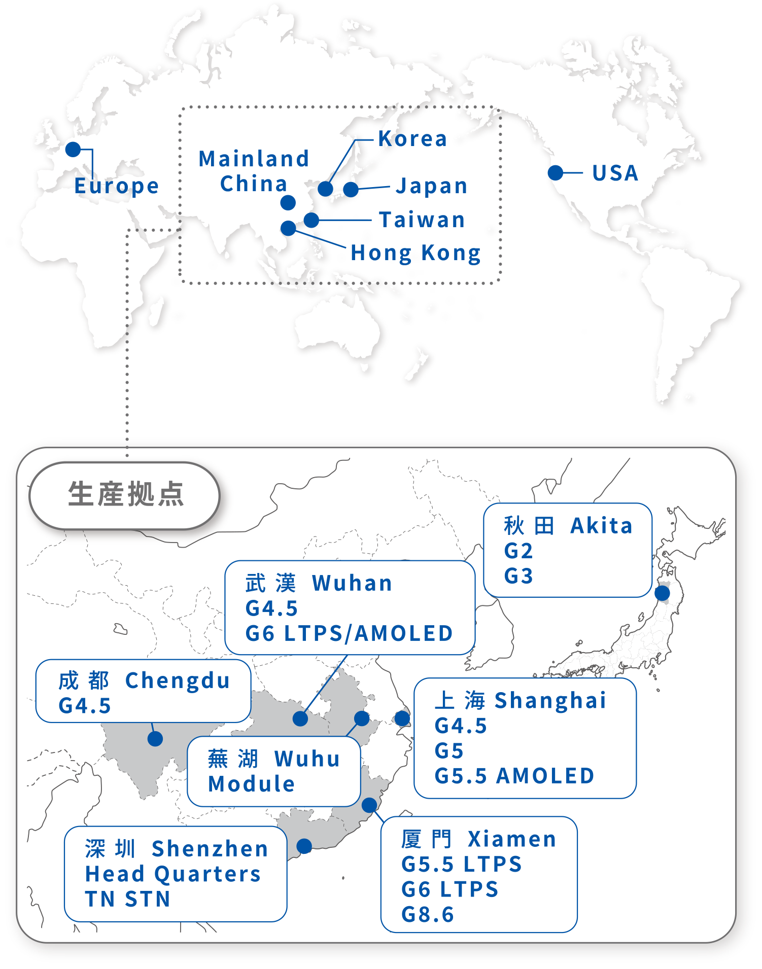 天馬は1983年に創業し、1995年には深圳証券取引所(SZ.000050)に上場しました。今日では世界各地に広がる生産拠点と販売網により、数千に登るお客様へディスプレイソリューションをお届けしています。